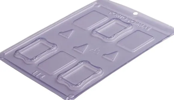 Med denna Porto Formas Simple Mold kan du skapa professionella praliner i form av fina ramar. Fyll bara på botten av PET-formen med choklad upp till kanten. Låt stelna och tryck sedan ut chokladen.