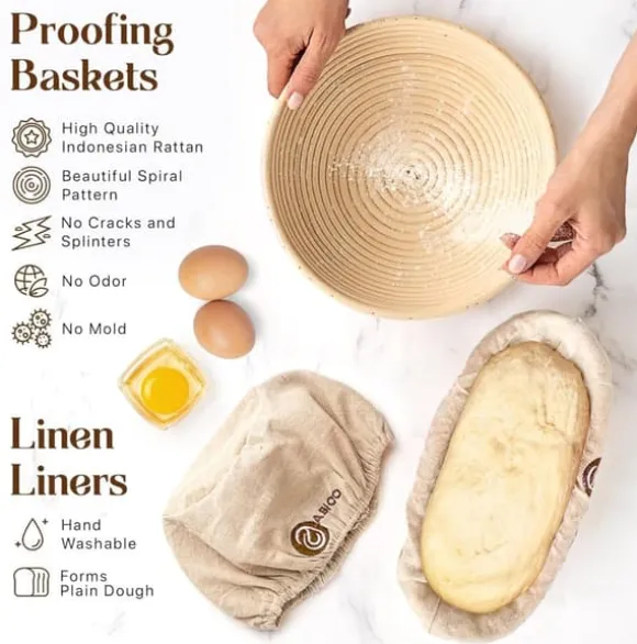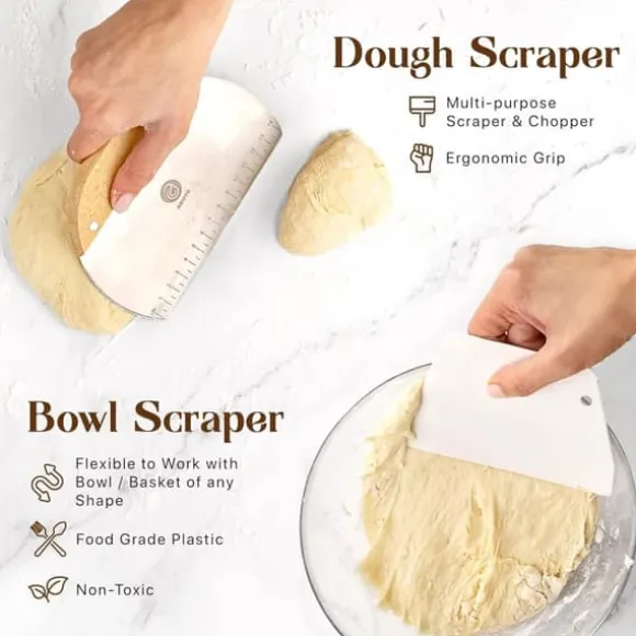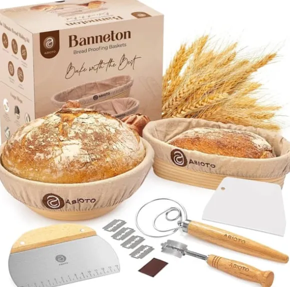 Professionell bakbok för surdeg - 14-delars set med banneton, lammekaks och skrapor - Perfekt för hemmabagare