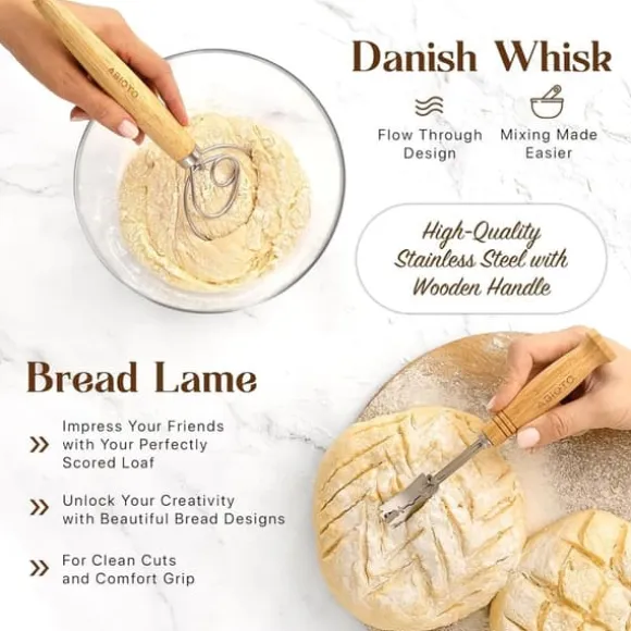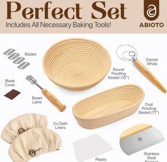 Professionell bakbok för surdeg – 14-delars set med banneton, lammekaks och skrapor – Perfekt för hemmabagare