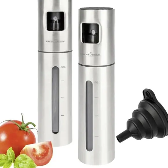 Set med vinäger- och oljespruta, bestående av två sprutflaskor. Bäst lämpad för t.ex. vinäger & olja, citroner/limejuice, sojaauce, vatten. Upptäck en värld av intensiva aromer och enkel precision med Spraydispenser för vinäger och olja från ProfiCook. Denna fusion av funktionalitet och elegans höjer din kulinariska upplevelse till en helt ny nivå. Setet innehåller två högkvalitativa sprutflaskor med vardera 100 ml kapacitet. Från vinäger och olja till sojaauce och nyligen pressad citrussaft finns det många sätt att ge dina kreationer en sista finslipning. Tack vare den nedsänkbara tryckdesignen och den intelligenta pumpmekanismen blir en exakt dosering lekande lätt. Ingen droppe går förlorad, ingen överdosering grumlas av smaken. Med hjälp av riktade spraystötar uppnår du optimala resultat. Skalan och siktfönstret på flaskorna möjliggör en exakt kontroll. Den vikbara silikontratten underlättar påfyllning. Oavsett om det gäller grillkvällar, picknick eller andra sociala rundor. Ge dina maträtter den perfekta smaken. Satsen med vinäger- och oljespruta blir till en matplats för din kulinariska resa – precision, estetik och njutning. OBS! Vi beklagar att vi inte har hunnit översätta denna produkttext. Texten nedan är maskinöversatt från tyska.