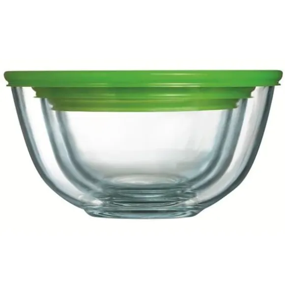 Praktisk och funktionell, denna transparenta glasberedningsskål har ett plastlock. Idealisk för matlagning och förvaring varje dag, den är repärob resistant och kan användas i ugnen upp till 300°C. Kompatibel med mikrovågsugn, kylskåp och diskmaskin. Diameter: 14 cm.