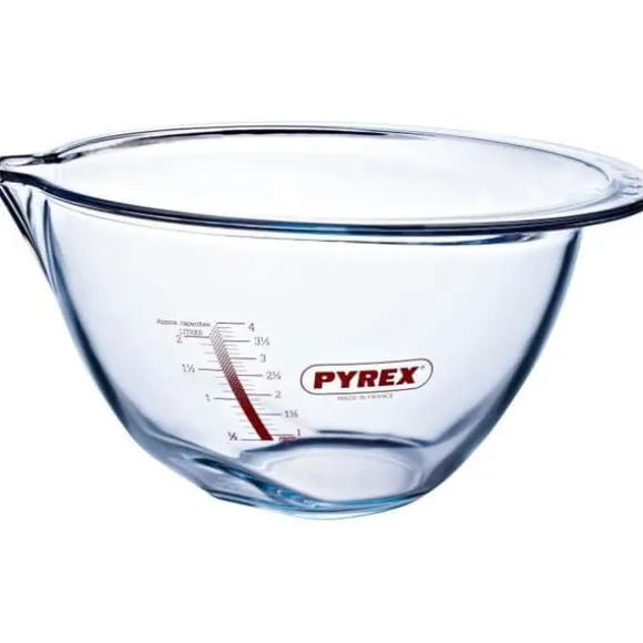 Pyrex Expert Bowl i glas med en kapacitet på 4,2 L är den perfekta assistenten för krävande förberedelser. Den är resistent mot extrema temperaturer från -40°C till +300°C och mot termiska stötar upp till 220°C, vilket gör den lämplig för både släta och tjocka blandningar tack vare sin breda hällpip. De lutande sidorna i 35° främjar luftcirkulationen i förberedelserna. Diskmaskinskompatibel.
