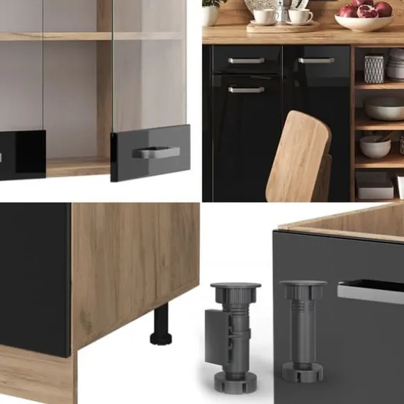 Pentryt har moduler ombyggda enligt önskemål och erbjuder möjlighet att lägga till ytterligare moduler efter behov. Benen är justerbara för en personlig höjd.