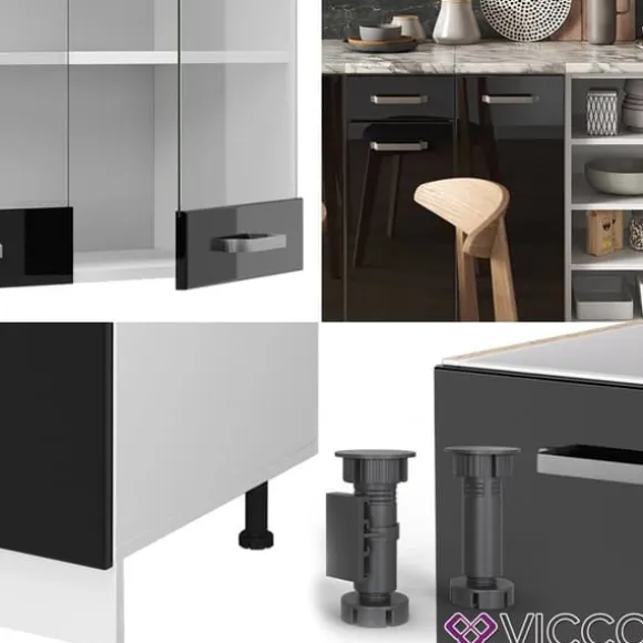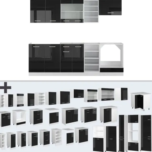 R-Line kök, 240 cm utan bänkskiva, Blank svart/Vit, Vicco