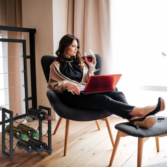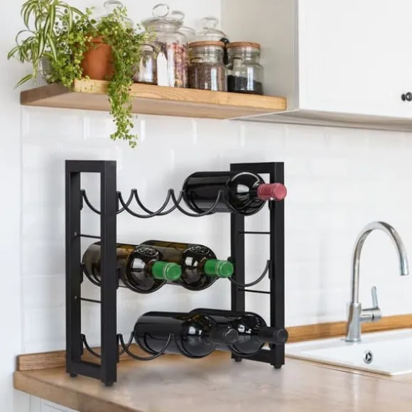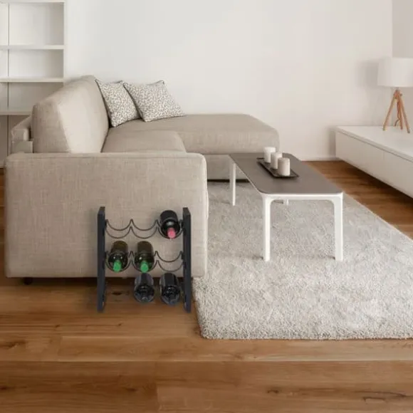 Detta flaskställ är ett måste för alla vinälskare! Med en kapacitet som rymmer 9 flaskor kan du, när du får besök eller unnar dig ett glas på kvällen, visa upp dina favoritviner och alltid ha en flaska vin tillgänglig. Vinflaskorna förvaras horisontellt – korkarna torkar inte. Tack vare sin diskreta design och sina eleganta former gör flaskstället sig bra både i köket och i hemmets bar.