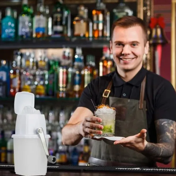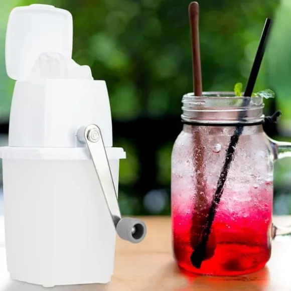 Det är numera lätt att göra krossad is tack vare denna fantastiska krossmaskin! Du behöver bara lägga isbitarna i den avsedda behållaren och stänga locket. Därefter vrider du helt enkelt på veven så faller den krossade isen ner i behållaren. Nu kan du enkelt göra cocktails eller kalla drycker som en riktig professionell med denna praktiska apparat. Tack vare de halkfria fötterna står krossmaskinen stabilt på plats, även när du använder den.