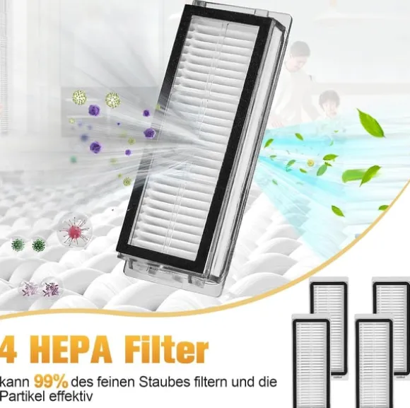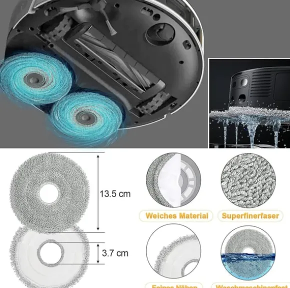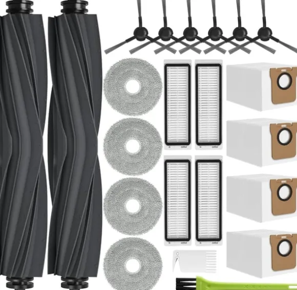 Komplett rengöringskit: Detta kit innehåller allt du behöver för att hålla din robotdammsugare igång med högsta prestanda. Det innehåller viktiga komponenter som huvudborstar, dammpåsar, sidoborstar, moppdukar och filter, vilket säkerställer noggrann rengöring under en längre period.