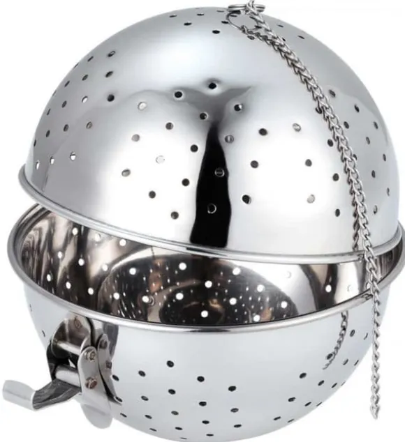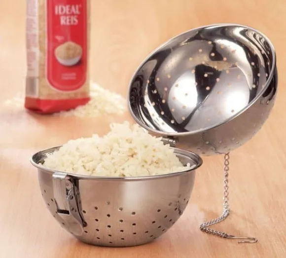 RISKOKARINSTÄLLNING FÖR TILLAGNING AV RIS Insatsen, en bollformad behållare för att koka ris, är en praktisk pryl som gör att du kan tillaga den utan rädsla för att spilla innehållet. Produkten har små hål, så den tillagade produkten kan silas omedelbart. Det låter dig laga inte bara ris, utan också små grönsaker. Med hjälp av en praktisk kedja kan du enkelt dra ut bollen ur grytan EGENSKAPER: – Tillverkad av slitstarkt rostfritt stål, lämpligt för direktkontakt med mat – Rymmer 250g ris åt gången – Kan hängas i grytan, vilket gör att du kan hänga den. att koka ris perfekt eller smaksätta soppor, grytor och många andra rätter andra rätter – Den består av två halvklot som sluter tätt HUR MAN ANVÄNDER: – Öppna bara riskokaren, lägg i lägg in riset och lägg det i en kastrull – Ta sedan ut det när riset är kokt – Kan användas för att brygga stora mängder te eller tillsätta kryddor – Det är lätt att rengöra – det kan diskas i diskmaskin. DIMENSIONER: – Diameter: 14cm – Kapacitet: 250g ris – Kedjans längd: 14 cm