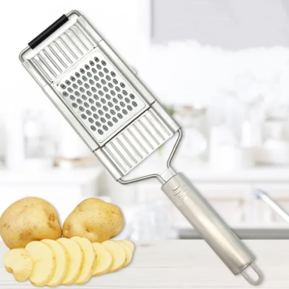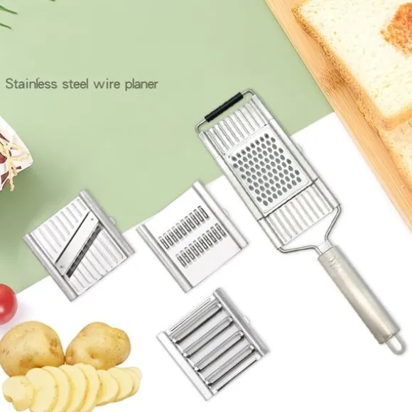 Multifunktionell design: Detta mångsidiga set innehåller ett rivjärn, en skärare och en julienneskalare, vilket ger dig flera skäralternativ i ett praktiskt paket. Ta itu med en mängd olika köksuppgifter med lätthet.