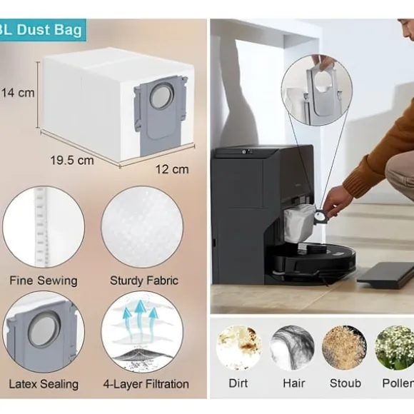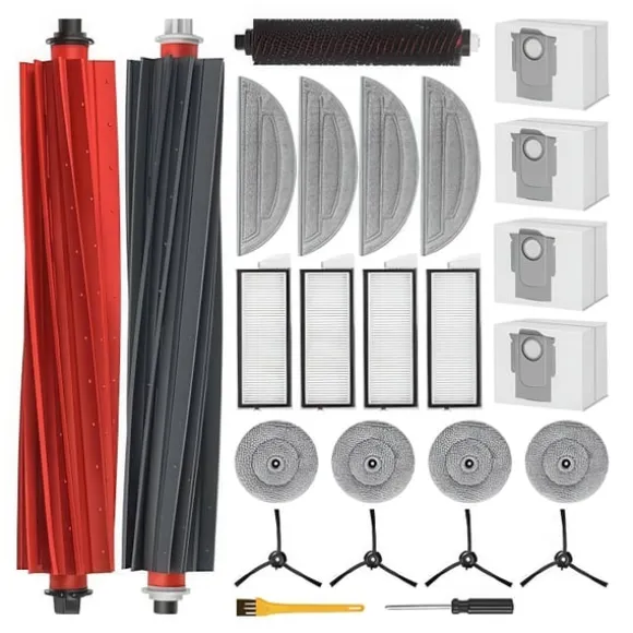 Detta 25-delars kit innehåller allt som behövs för att hålla din robotdammsugare i toppskick. De dubbla huvudborstarna i silikon minimerar hårtrassel och fångar upp smuts effektivt. De tvättbara mopdukarna och HEPA-filtren hjälper dig att bli av med både damm och pollen – perfekt för dig med känsliga luftvägar. Med de praktiska dammpåsarna och sidoborstarna blir städningen enklare och effektivare, oavsett om du har husdjur, barn eller bara vill slippa dammråttor.