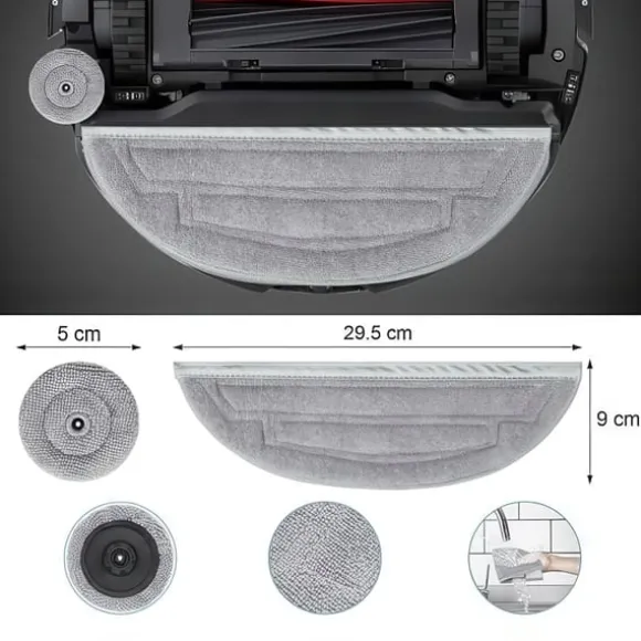 - Medföljer: 4 st svarta sidoborstar, 4 st moppdukar, 2 st huvudborstar, 4 st dammsugarpåsar, 4 st HEPA-filter, 4 st sidodynor, 1 st självrengörande rullborste, 1 st rengöringsborste, 1 st stjärnskruvmejsel