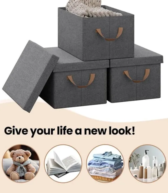 Rootz förvaringskorgset med lock – 3-pack i grått för organisering