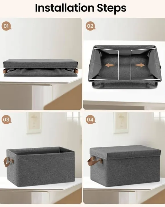 Låda med lock: Enkel åtkomst till föremål, skyddar mot damm, handtag för enkel transport