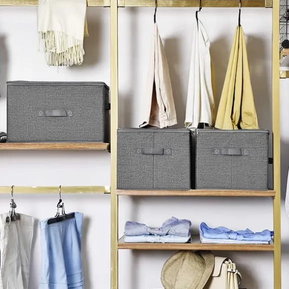 Flexibel: De 3 handtagen (ett på framsidan, 2 på sidorna) hjälper dig att enkelt dra ut dessa förvaringslådor från hyllan eller transportera dem från vardagsrummet till sovrummet. Dessutom kan du vika dessa lådor på en minut och förvara dem på ett platsbesparande sätt.