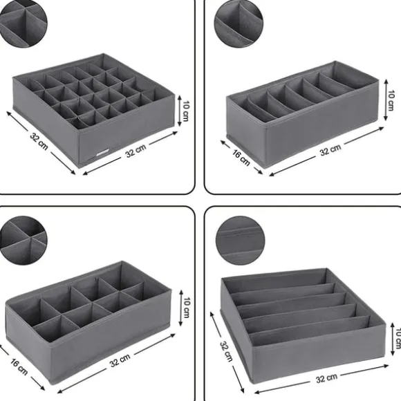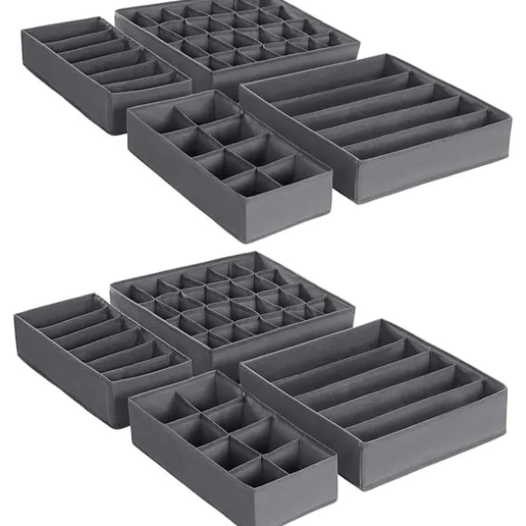 Organisera: 8-delad förvaring möter en mängd olika organisationsbehov, med två 5-cellsorganisatorer (32 x 32 x 10 cm) för behåar, två 6-cellsorganisatorer (32 x 16 x 10 cm) för halsdukar eller byxor, två 8 -cellorganisatorer (32 x 16 x 10 cm) för slipsar och två 24-cellers (32 x 32 x 10 cm) för strumpor eller andra tillbehör