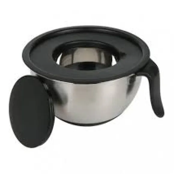 Antiglid silikonskydd på yttersulan. Skålen har en bekväm hällpip och ett handtag Ett tättslutande lock, som stängs genom att trycka hårt på mitten av locket.
