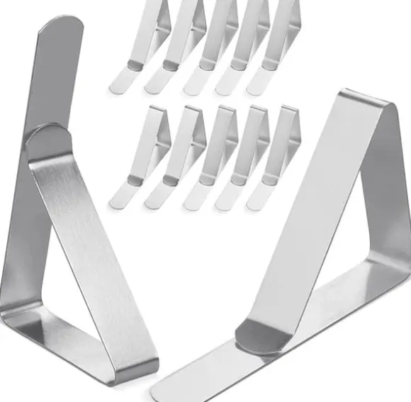 Elasticitet: Bordsduksklämmorna är tillverkade av rostfritt stål, vilket gör dem hållbara och okrossbara.