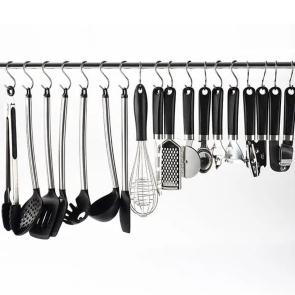 Platssparande S-formad design: Den S-formade designen tillför smidigt extra utrymme i ditt kök. Häng flera redskap på en enda krok och håll dina bänkskivor fria från röran och dina köksredskap inom räckhåll.