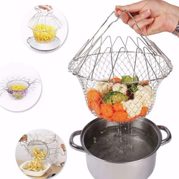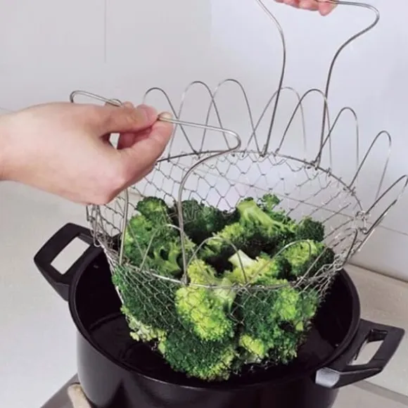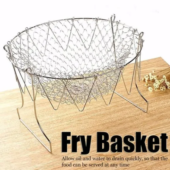 Välkommen till vår butik! Denna hopfällbara friteringskorg gör matlagning enklare och säkrare för alla. Den kombinerar funktionerna hos en ångkokare, djup stekpanna och durkslag, vilket ger bekvämlighet och mångsidighet i köket. Tillverkad av slitstarkt rostfritt stål, hjälper den till att minska risken för brännskador genom att hålla handtaget svalt och utanför kastrullen under användning. Använd den för att tvätta grönsaker, hälla av olja och vatten snabbt, eller för att enkelt laga, koka och steka mat. När den inte används fälls den ihop platt för kompakt förvaring, vilket sparar utrymme. Korgen expanderar direkt från en platt form till ett flexibelt matlagningsverktyg, vilket säkerställer praktisk användning och effektivitet. Produktinformation: Skick: 100 % helt ny, Produkttyp: Hopfällbar friteringskorg, Material: Rostfritt stål, Handtagsstorlek: Ca 15,5 x 13 cm / 6,1 x 5,1 tum, Produktens hopfällbara storlek: Ca 23 x 23 x 2 cm / 9,1 x 9,1 x 0,8 tum, Vikt: Ca 130 g / 4,6 oz. Du får 1 x Hopfällbar friteringskorg. Nöjdhet: Våra kunder är vår högsta prioritet. Om du upptäcker några produktproblem efter att du mottagit varorna, såsom skador eller felaktig mängd varor, vänligen kontakta säljaren omedelbart. Vi gör vårt bästa för att ge dig tillfredsställande kundservice.