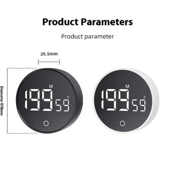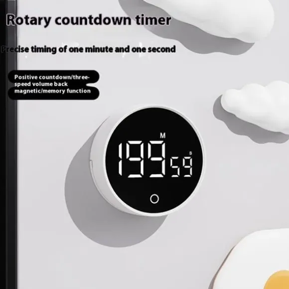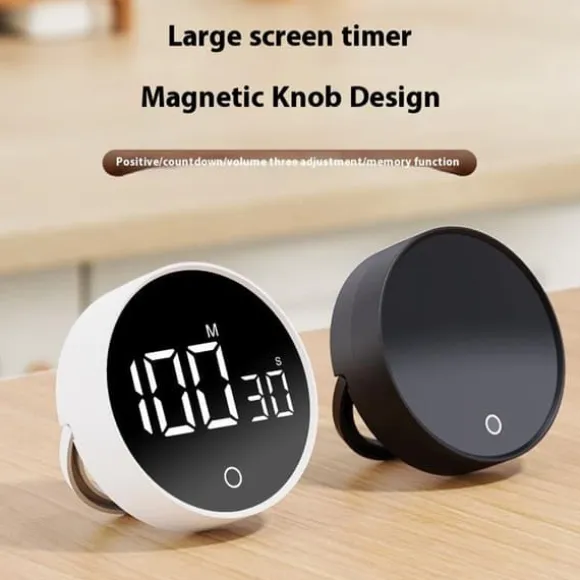 Roterande nedräkningstimer Magnetisk visuell kökstimer Student påminnelse om inlärningstid – Vit[Exakt timing] Exakt nedräkning till tvåan för noggrann tidshantering[Silent Timing] Tyst digital displaydesign utan tickande ljud, perfekt tyst timing[Mångsidig nedräkning/uppräkning] Stöder både nedräknings- och uppräkningslägen, justerbar från 00-199 minuter och 0-59 sekunder[Flexibla placeringsalternativ] Inbyggt stativ för bordsskiva och magnetiskt underlag för säker montering på järnytor[Justerbar volym] Användarvänlig Volymjustering i tre nivåer för att möta dina olika behov