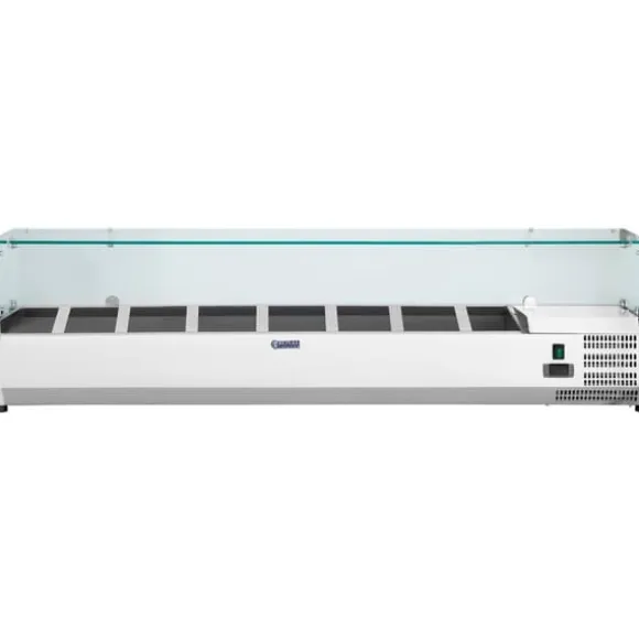 Kylränna – 160 x 33 cm – 8 GN 1/4 behållare – glasöverbyggnad