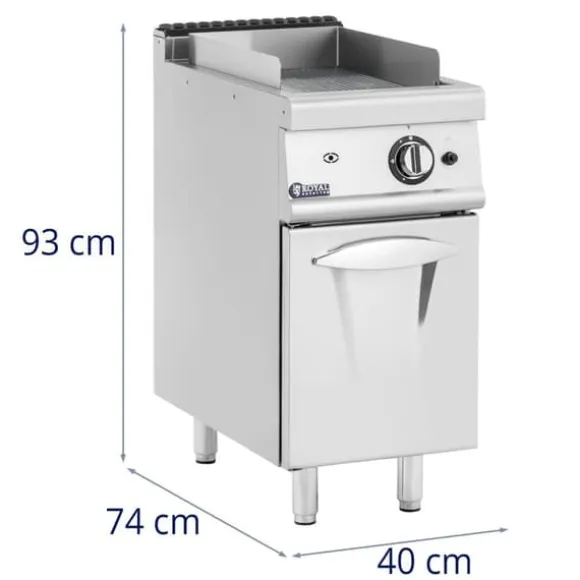 På detta gas-stekbord från Royal Catering kan du laga korv, bacon, hamburgare, grönsaker och toast! Den robusta modellen med en grillplatta av kromstål är idealisk för matbranschen, oavsett om det är för hotell, kafeterior, foodtrucks, bistroer, barer, restauranger eller cateringevenemang. Under den räfflade grillytan hittar du ett rymligt skåp för kastruller, stekpannor och andra köksredskap, som du alltid kan förvara undan damm. Du öppnar det via en slagdörr och har snabb tillgång till ditt arbetsmaterial.