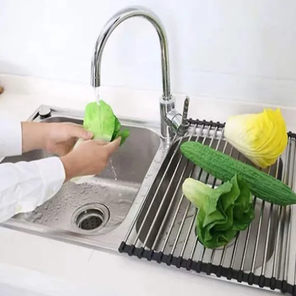 Detta diskställ i snyggt rostfritt stål rullar du enkelt ut över diskhon när du har diskat klart, sparar både plats och tid då du slipper torka av därunder! När disken har torkat rullar du enkelt upp diskstället och ställer det åt sidan!