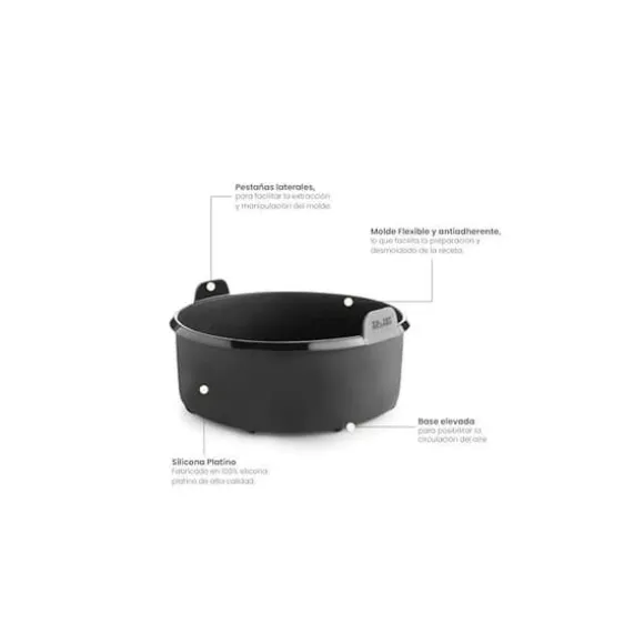 Den runda behållaren för luftfritös från märket IBILI är tillverkad av 100 % platinasilikon, vilket garanterar hållbarhet och säkerhet. Denna form är fri från BPA, vilket gör den idealisk för hälsosam matlagning. Med mått på 20 cm i diameter och 7 cm i höjd är den designad för att passa perfekt i standard luftfritöser och erbjuder en praktisk lösning för att förbereda en mängd olika rätter. Dess flexibla och non-stick struktur gör det enkelt att förbereda och avlägsna maten, vilket säkerställer en perfekt presentation av dina rätter vid varje användning. Tålig mot extrema temperaturer från -60 °C till 230 °C, är denna behållare mångsidig och kan användas i ugn, mikrovågsugn, frys, och kan diskas i diskmaskin för enkel rengöring. De inbyggda sidoflisarna möjliggör säker hantering, vilket minskar risken för brännskador och olyckor. Utöver att hålla luftfritösens trumma ren, förhindrar denna form smutsansamling, vilket förenklar rengöringen. Med en lättvikt på 0,18 kg är den lätt att hantera och förvara. Denna behållare är en oumbärlig tillbehör för matlagningsentusiaster som vill optimera användningen av sin luftfritös samtidigt som de säkerställer en oklandig hygien.