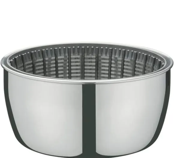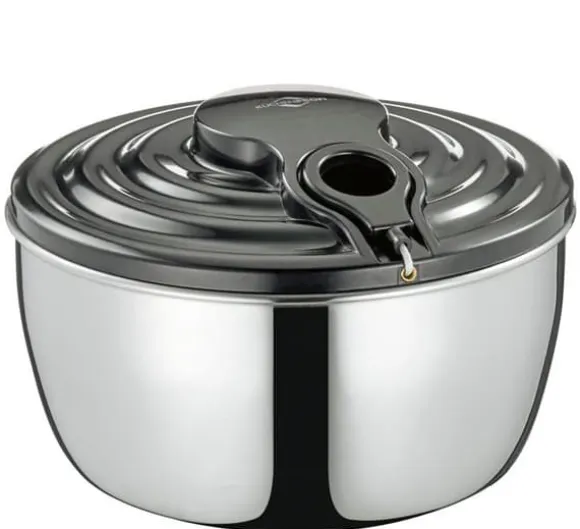 Salad spinner KÜCHENPROFI i rostfritt stål, kapacitet 3,25 L. Idealisk för familjer, den torkar dina sallader på några sekunder. Lätt att rengöra och avtagbar för optimal hygien, dess multifunktionella design gör att du kan använda skålen, korgen och locket separat.