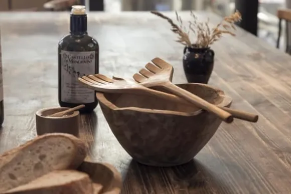 Salladsbestick 2 st, formade som händer med skaft, handgjorda på Bali.