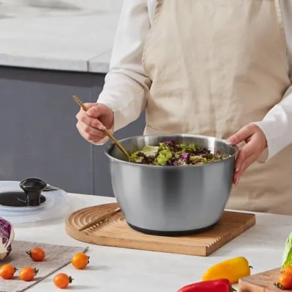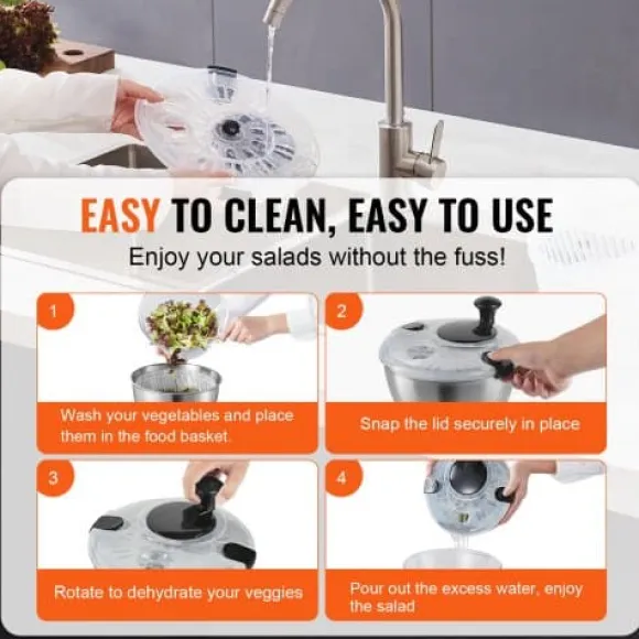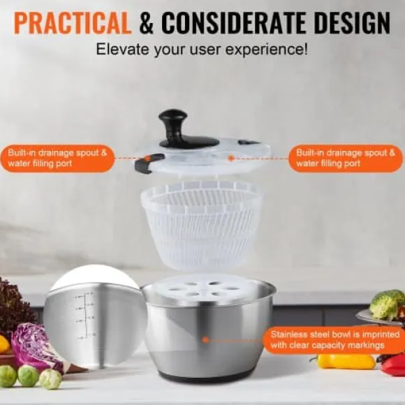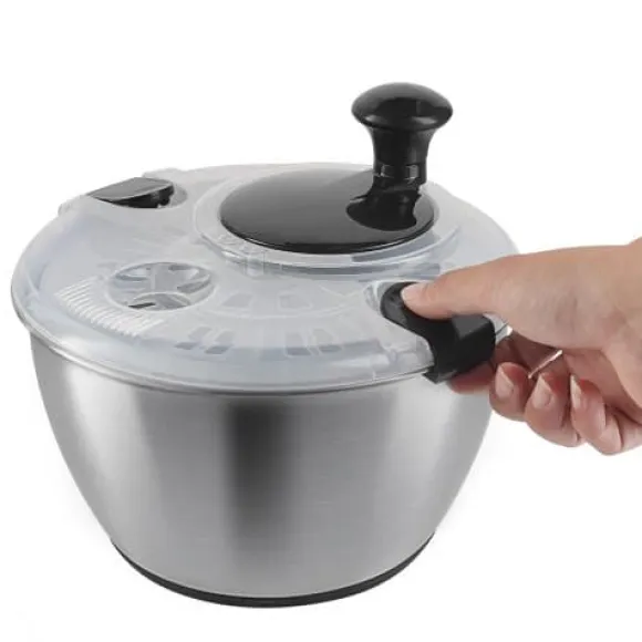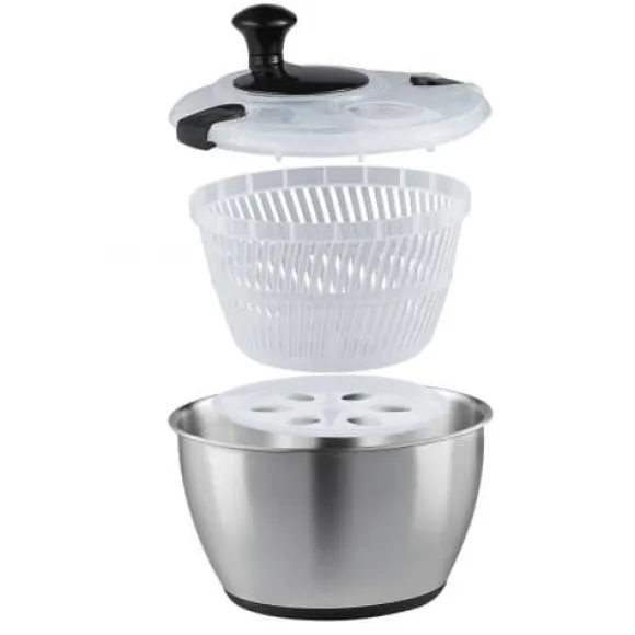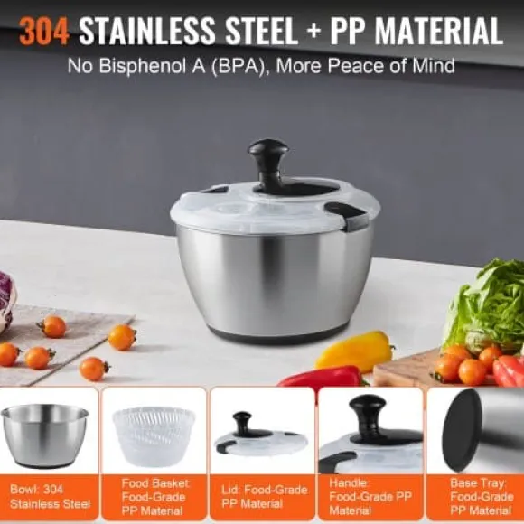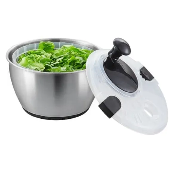 Denna salladsslunga i rostfritt stål gör det snabbt och enkelt att tvätta och torka grönsaker, örter, bär och frukt, vilket hjälper dig att förbereda fräscha, hälsosamma måltider med lätthet. Dess hållbara konstruktion och användarvänliga design ger pålitlig prestanda och enkel rengöring, medan den stora kapaciteten är perfekt för familjestora portioner. Njut av bekvämlighet och trygghet med livsmedelssäkra material och en stabil, praktisk design.