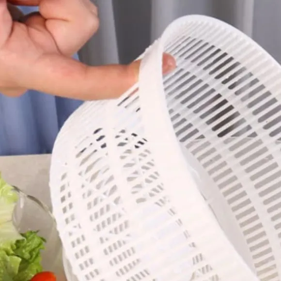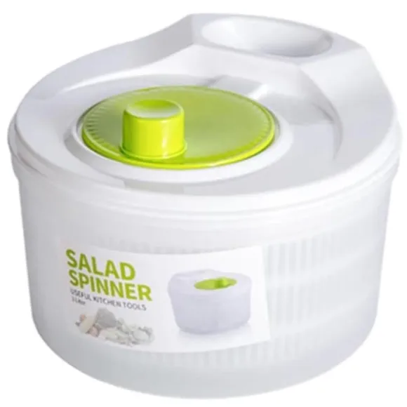 Salladssnurra Multi-Use Sallad Spinner Manuell grönsakstork avlopp Roterande grönsakstvätt – Vit