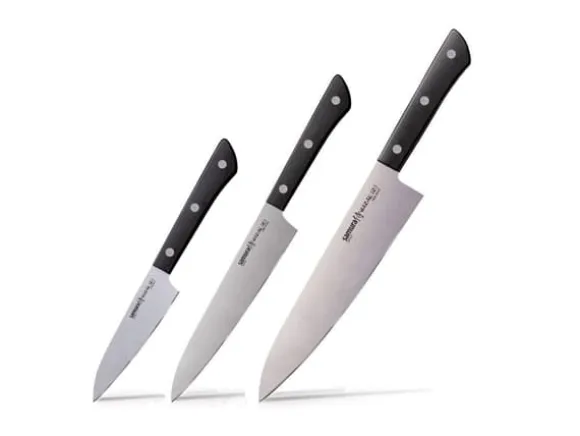 Vi presenterar SAMURA Harakiri 3 Messer Set, en fint utformad samling av köksknivar designade för både professionella kockar och matlagningsentusiaster