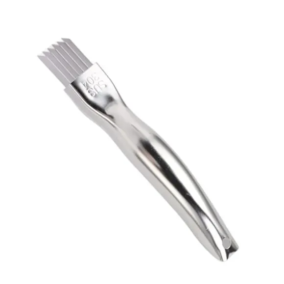 1, ULTRA FIN RIVNING: Strimlingsverktyget i rostfritt stål kan skära salladslök i mycket fina strimlor, vilket gör din matlagning mer raffinerad.