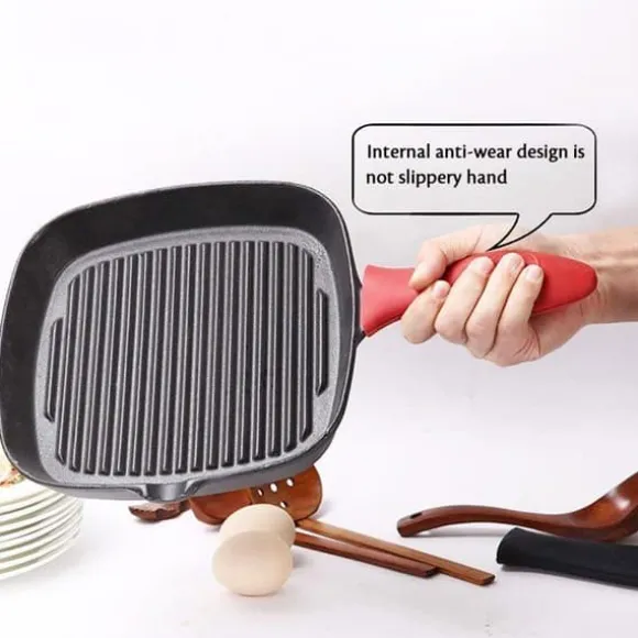 silikonhandtag för kastruller och stekpannor, röd och svart, värmebeständig, utan BPA, diskmaskinssäker. detta ergonomiska handtag ger ett bekvämt och säkert grepp för att lyfta dina varma kastruller. det är tillverkat av livsmedelssäker silikon, värmebeständigt upp till 230 c. lätt att förvara, det har ett praktiskt hänghål. perfekt för att skydda dina händer under matlagning. kompatibelt med gjutjärns- och metallkastruller och stekpannor. köp utan risk: nöjdhetsgaranti eller pengarna tillbaka.