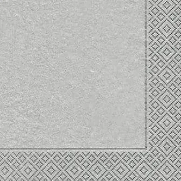 Denna enhetliga silvriga pappersservett på 33 x 33 cm är idealisk för dina luncher. Paketet innehåller 20 servetter. Tillsätt en touch av elegans till ditt bord med dessa kvalitetsservetter.