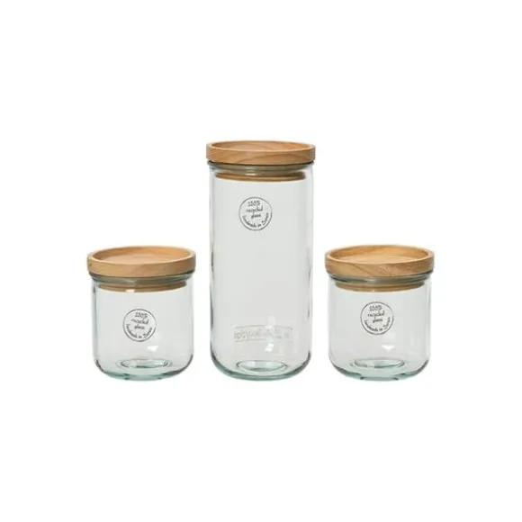 Set med 3 förvaringsburkar i 100 % återvunnet glas 869702 i olika storlekar och med lock i