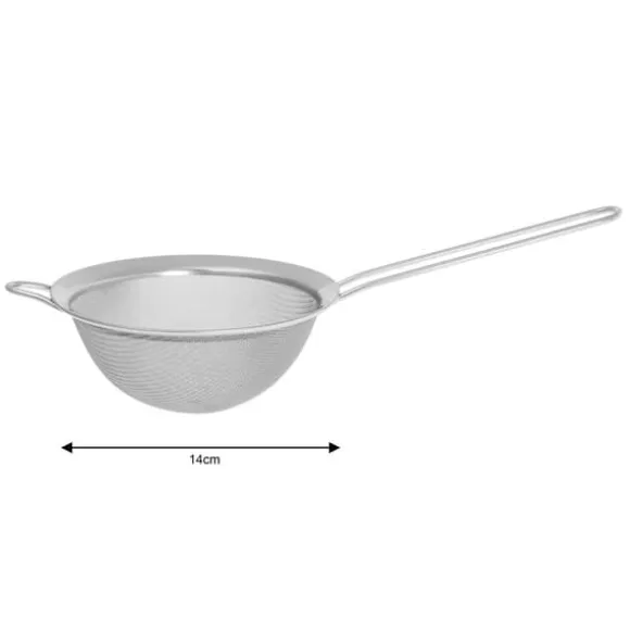 En uppsättning kökssilar i rostfritt stål. Användbar för mjöl, strösocker eller silande buljonger.