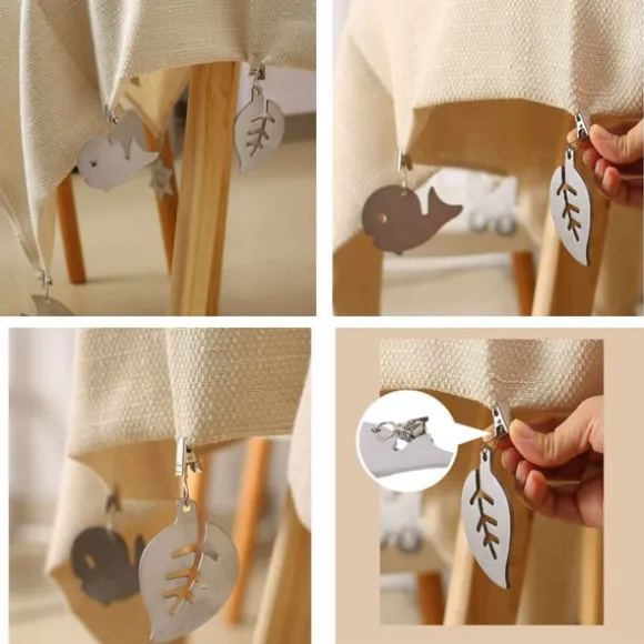 Säkert & halkfritt grepp: Med en tandad klämmekanism ger dessa klämmor ett starkt och säkert grepp om dina bordsdukar, vilket förhindrar att de glider eller blåser i vinden. Njut av snygga och eleganta bordssättningar varje gång.