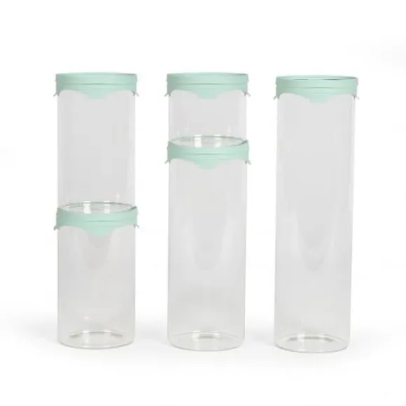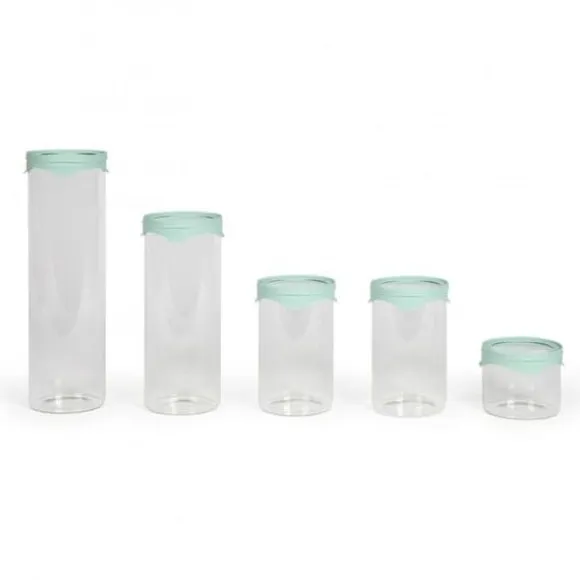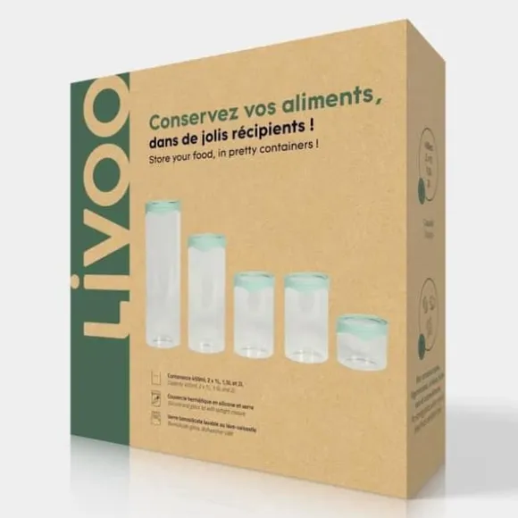Set med 5 förvaringsburkar – LIVOO – MEN399 – 5 burkar – 450 ml – Borosilatglas – Silikonlock och silikonglas