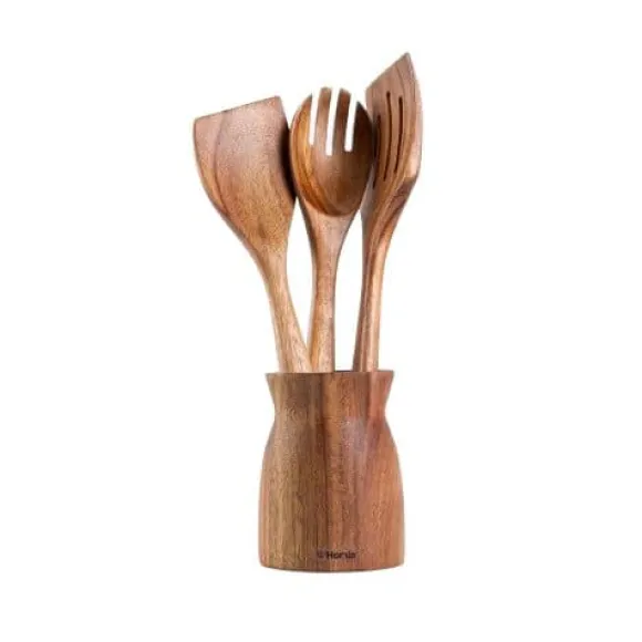 MOOKA köksredskapsset är det perfekta valet för personer som värdesätter naturliga material och funktionalitet i köket. Tillverkade av slitstarkt akaciaträ ser de inte bara snygga ut utan är också skonsamma mot non-stick ytor.