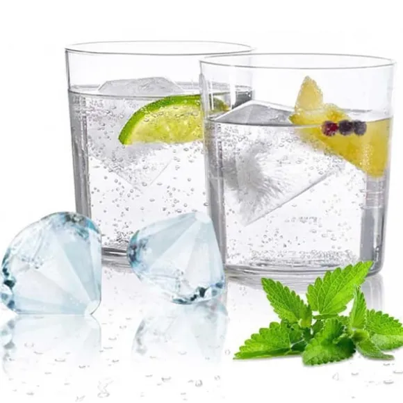 Svalkar garanterat din drink! Kyl vilken dryck som helst på nolltid med dessa stora snygga diamant isbitar. Mycket mer dekorativ is som mer liknar ett konstverk än kylning för dryck. Perfekta för whisky eller cocktails! Formen skapar enkelt 4 diamanter. Allt du behöver göra är att hälla vatten i formen och ställa in den i frysen. För att få riktigt genomskinlig is rekommenderas det att vattnet kokas innan frysning!