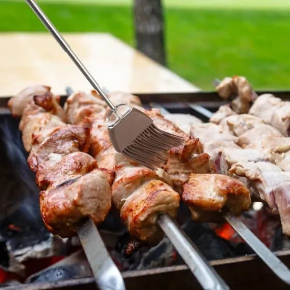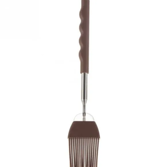 Det kommer att göra det lättare att belägga maten med marinad när du bakar eller grillar. Tack vare möjligheten att fällas ut till en längd av 67 cm eliminerar den risken för att bränna händerna. Produktegenskaper: TELESKOP – En köksborste med teleskopskaft är perfekt för att smörja kött, kakor och köksredskap. Det skyddar dina händer från värmen under grillning och förhindrar brännskador från den varma ugnen under gräddningen. Borsten mäter 21 cm x 4 cm innan den fälls ut, och utfälld når den en maximal längd på 67 cm. SOLID – Borsthandtaget är tillverkat av silverfärgad metall av högsta kvalitet. Borsten är tillverkad av slitstark, brun silikon, som är resistent mot höga temperaturer från -40°C till +220°C. ANVÄNDBART – Perfekt för att smörja kallt och varmt kött, applicera marinader, sprida äggtvätt på kakor och till och med för glasyr av bakverk. Även användbar för smörjning av köksredskap, t.ex. PRAKTISKT – När den är ihopfälld tar borsten liten plats i lådan, vilket gör den väldigt praktisk. Det teleskopiska handtaget gör att du kan anpassa längden på borsten efter dina individuella behov och gör att du kan arbeta på olika höjder, t.ex. när du smörjer eller häller upp mat på en het panna eller grill. LÄTT ATT ANVÄNDA – Köksborsten kan lätt rengöras med rinnande vatten och diskmedel. För korrekt skötsel, diska inte i diskmaskin. Den teleskopiska köksborsten ger bekvämlighet och flexibilitet vid smörjning, hällning och applicering av olika ingredienser på rätter. Perfekt för grillning, matlagning och bakning. Den flexibla spetsen på borsten gör det enkelt att breda ut t.ex. äggula eller olja på degens yta. Tillverkad av material av högsta kvalitet, vilket säkerställer användarkomfort. Originalprodukt från det tjeckiska märket Orion. Tillverkad i enlighet med europeiska standarder.