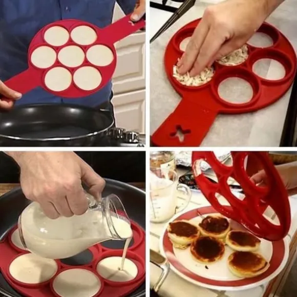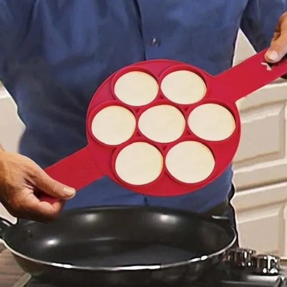 Silikonform av livsmedelskvalitet, perfekt för att förbereda pannkakor, omeletter och crêpes. Mått: 40×23.5×1.5cm. Praktisk och rolig, låter dig enkelt skapa runda rätter. Perfekt för fester och vardagsmatlagning.