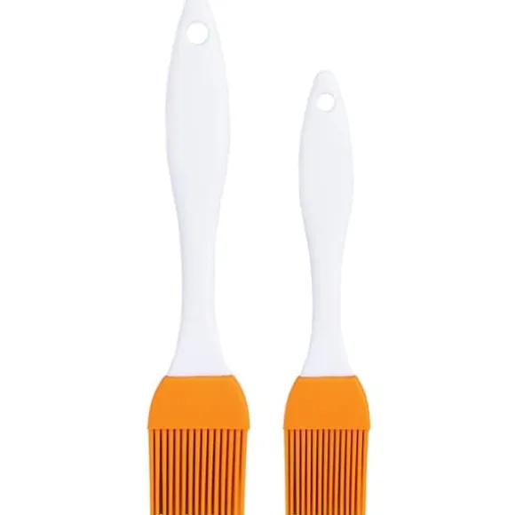 Set med två silikonpenslar för smörjning. Detta set är perfekt för hembakning, matlagning och bakning. Penslarnas flexibla spets gör det enkelt att breda ut saker som äggula eller olja över degytan. Tillverkad av material av högsta kvalitet, vilket garanterar bekväm användning. Helt säker för hälsan och livsmedelssäker. Originalprodukt från det tjeckiska märket Orion. Tillverkad enligt europeiska standarder.