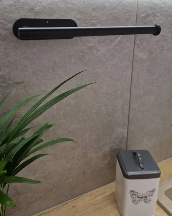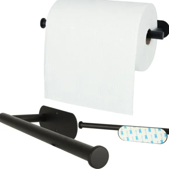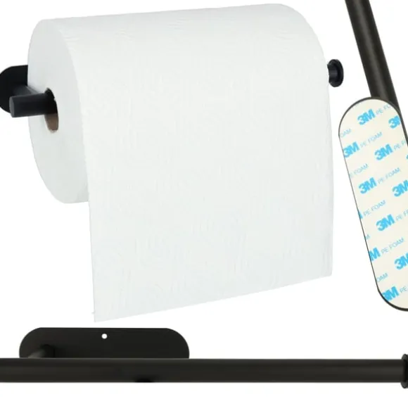 Upplev kombinationen av funktion och design med denna självhäftande pappershållare för hushållspapper. Den eleganta konstruktionen i matt svart metall ger ett stilrent intryck som passar i både kök, badrum och tvättstuga. Tack vare den starka 3M-tejpen monteras hållaren snabbt utan borrning eller verktyg, vilket gör den idealisk för vägg, skåp eller under hylla.