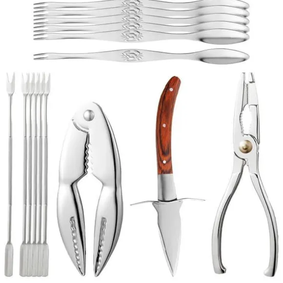 Innehåller: Skaldjursset i 15 delar. 1 x kniv, 1 x tång, 1 x knäckare, 6 x kräftgaffel, 6 x krabbgaffel.