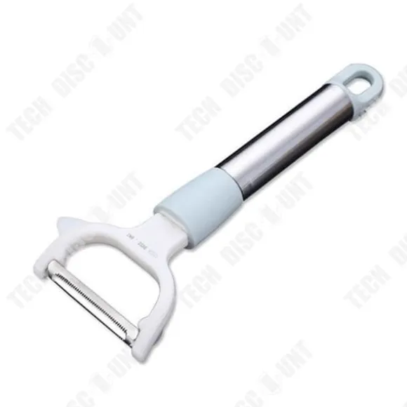 Den här vitkållställaren i rostfritt stål är designad för att enkelt skala frukter och grönsaker. Dess halkfria handtag säkerställer optimal komfort. Med sitt roterande blad anpassar den sig till alla former av livsmedel. Praktisk och hållbar, den är lätt att förvara och rengöra, perfekt för ett modernt kök.