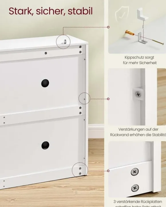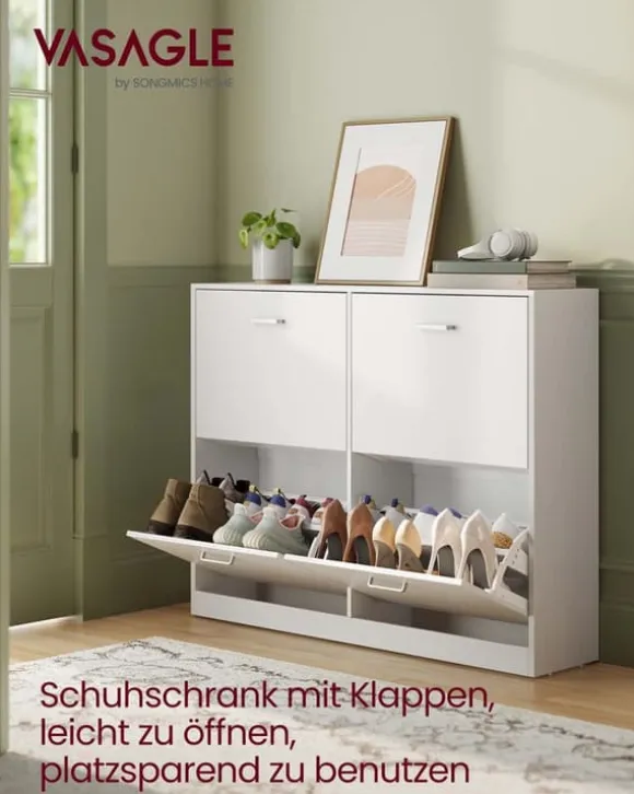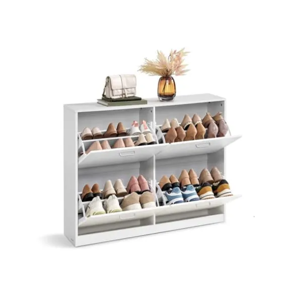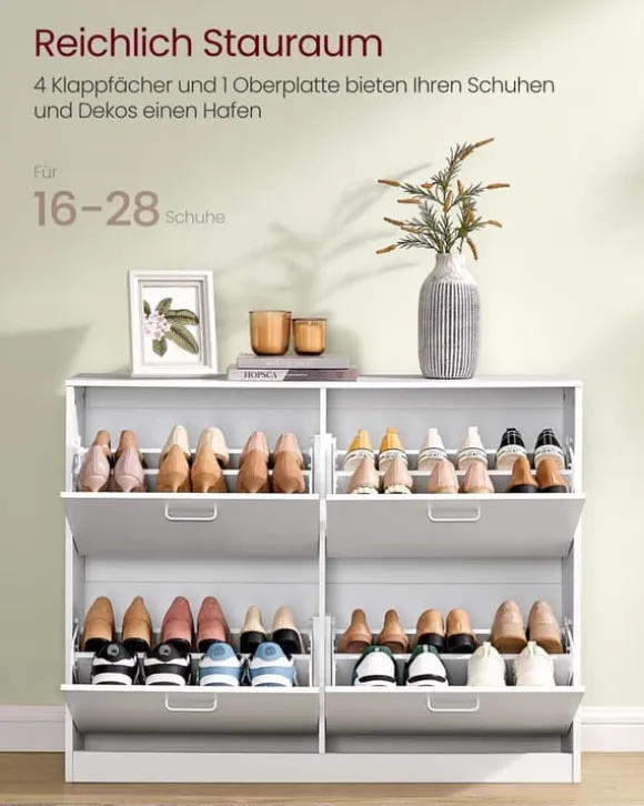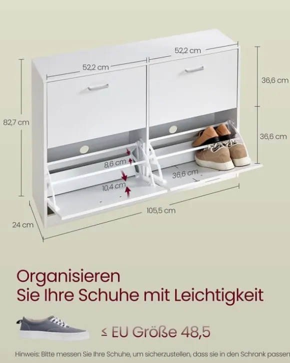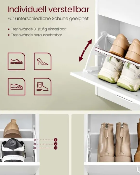 Denna skoskåp erbjuder en effektiv förvaringslösning med justerbara fack, idealisk för att organisera flera par skor prydligt i din hall eller entré. Dess robusta konstruktion säkerställer hållbarhet samtidigt som den behåller ett slankt och modernt utseende.
