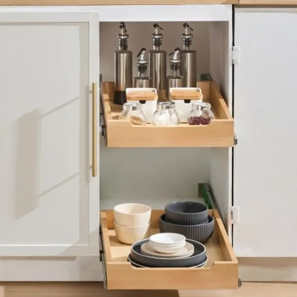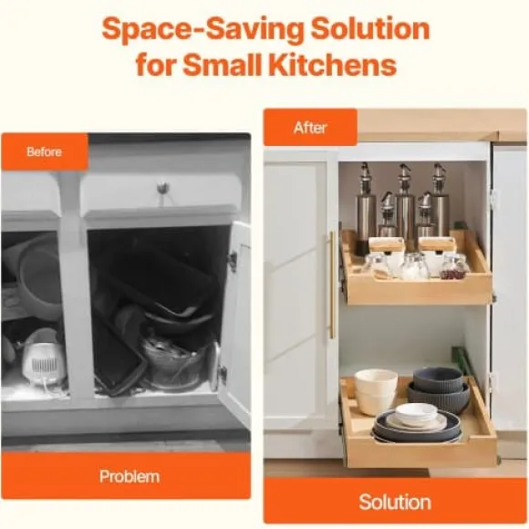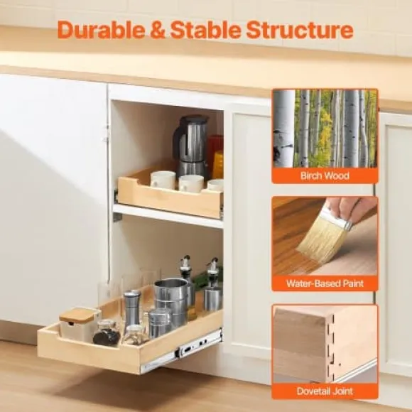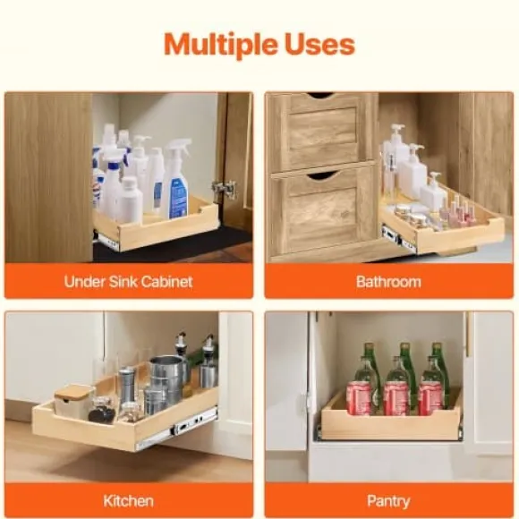 Håll ditt kök, skafferi eller badrum organiserat med denna utdragbara skåpsorganisator, designad för enkel åtkomst och effektiv förvaring av dina nödvändigheter. Tillverkad av robust björk med sinkade fogar och klarlackad yta, har den en kraftig skjutmekanism med mjukstängande skenor för smidig och tyst användning. Organisatören erbjuder flexibla installationsalternativ och maximerar utrymmet i dina skåp.